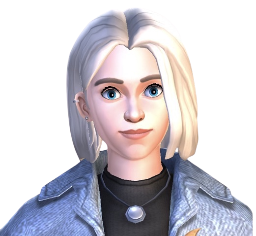 In human form, she was a young girl with light skin and blue eyes. She has pale lips, grey eyebrows, and short silver hair. Outside of class, she almost always wore a grey top, blue jeans, dark grey boots, and a moonstone pendant around her neck, as well as carried a small, dark grey satchel on her right shoulder. In her werewolf form, her silver fur colour matched her human hair colour.[5]