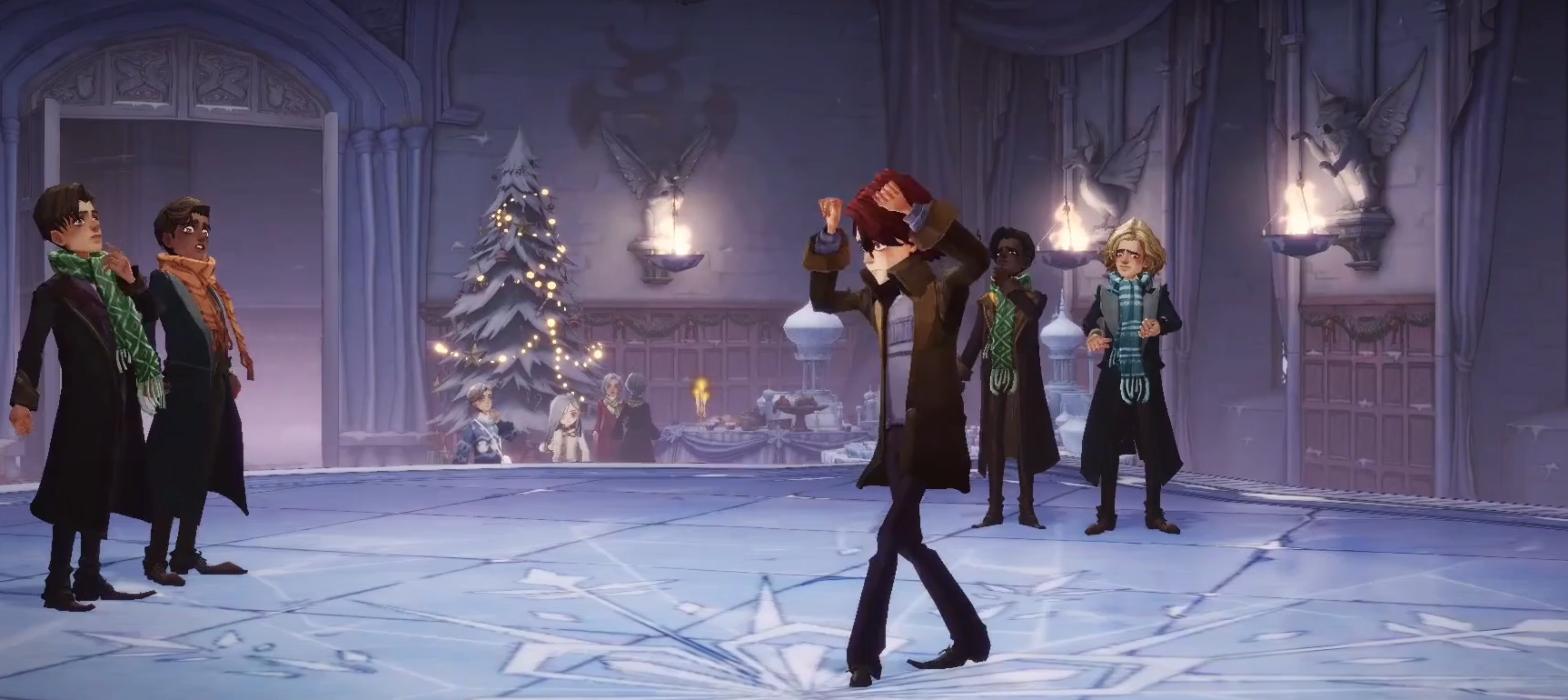 In the Great Hall, decorated for Christmas, Ivy was sitting at a table, looking deflated. When a friend pointed this out, she revealed that she was recalling memories of Christmas with her older sister, Winifred. Then Daniel appeared and invited them to a 'real snowball fight'. Ivy promised to go later and left the Great Hall. Daniel asked his friend about Ivy's condition, and when he found out why, he let out a few words as if he had thought of something and left the Great Hall.