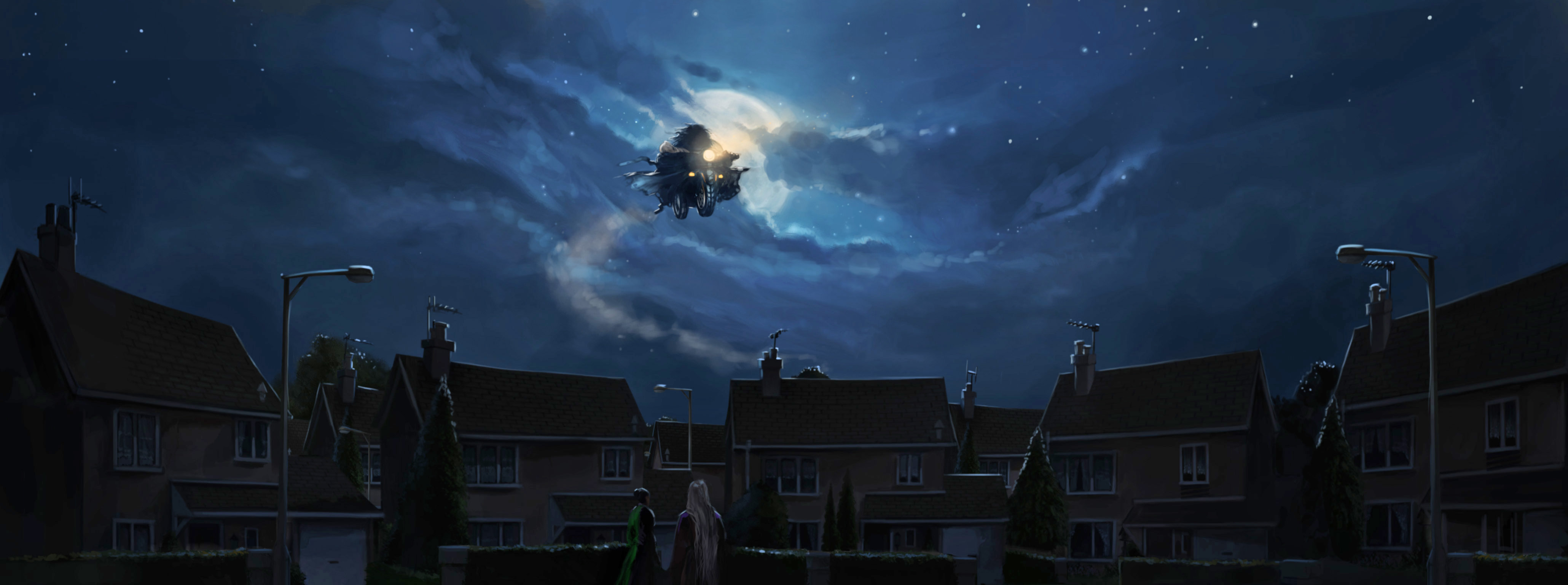 Rubeus Hagrid delivering baby Harry to 4 Privet Drive