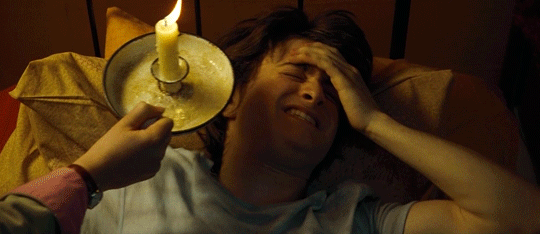 Harry as his scar began to hurt during the Sorting Ceremony after making eye contact with Severus Snape