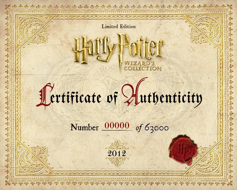 This 8" x 10" certificate was designed by MinaLima Design and inspired by the Hogwarts Express train ticket seen in the films. Each Harry Potter Wizard Collection contains a uniquely numbered framable certificate.