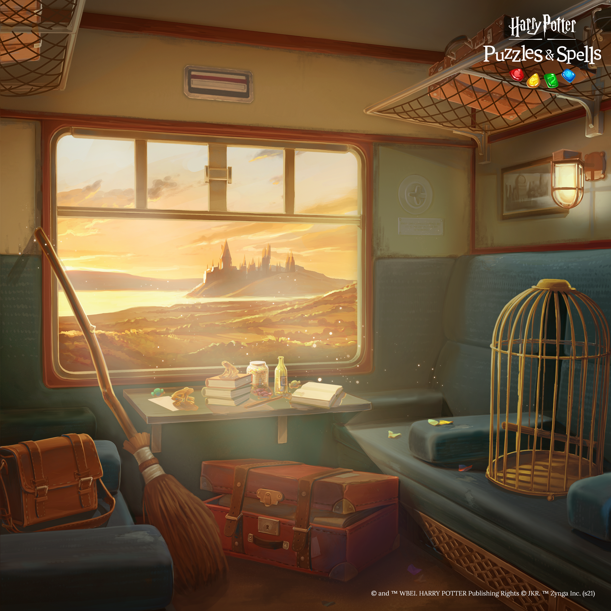 The Hogwarts Express interior as seen in Harry Potter: Puzzles & Spells