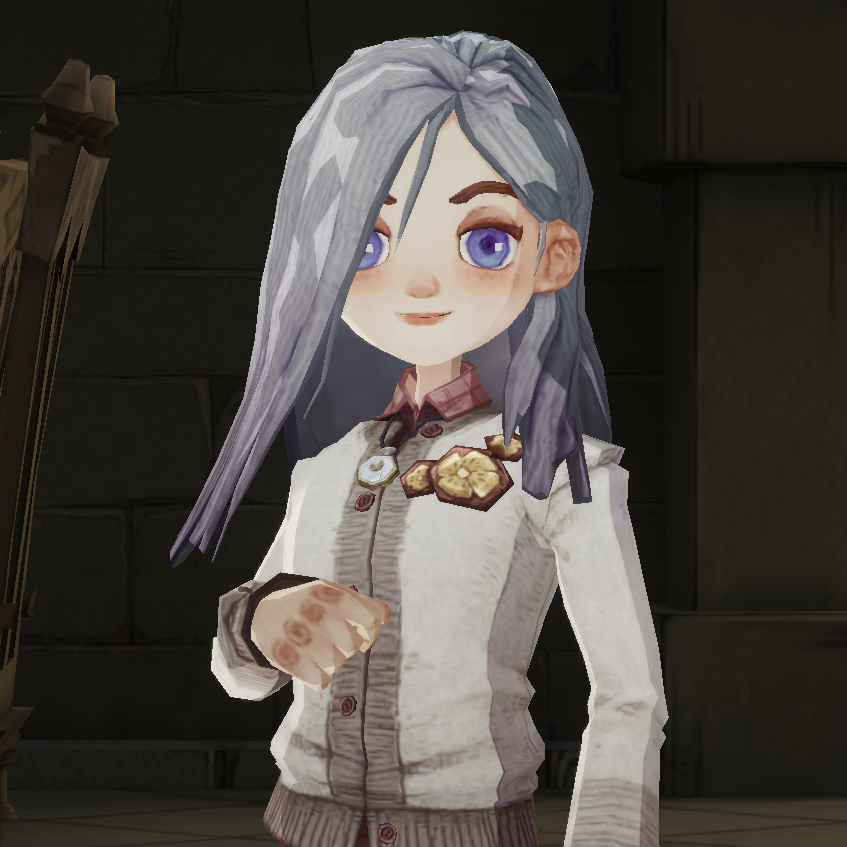 - In an early stage of development of the game, she was a person from over 50 years prior. She grew up in a happy wizarding family, but unlike her sister, who often showed off her magic to her, she insisted that she should not use it unnecessarily until she was old enough. In reality, she tried several times but never once succeeded. However, as soon as she started school and was able to use magic, she saw no problem with it.[55]
