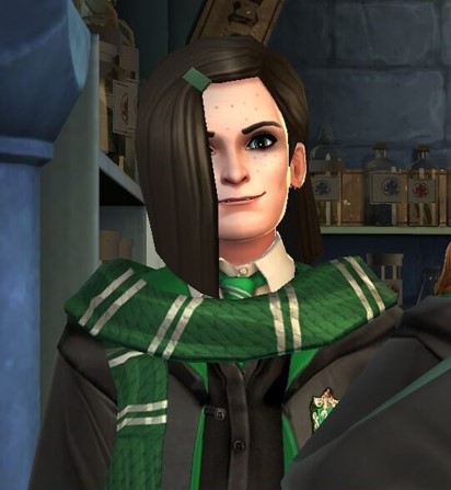 Later on, Jacob's sibling encountered Merula Snyde, an imperious and cruel Slytherin student, who tried to bully Rowan into admitting her as the most powerful witch at Hogwarts. Jacob's sibling intervened on Rowan's behalf, and Merula recognised them from their first name and introduced herself, instigating an argument between the students. Before it went too far, however, Professor Severus Snape ordered them to get into the Potions Classroom for the subsequent class.[56]