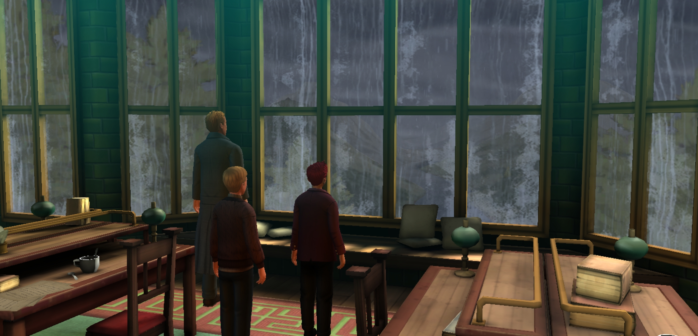 Once there, Jacob's sibling reunited with Rowan, and the two briefly discussed their shared excitement over finally attending school and their new House. However, they were confronted by a third-year student, who believed Jacob ruined the reputation of their House. After the student left, Jacob's sibling and Rowan talked about their timetables, and saw that they would be attending Charms class first thing next morning.[53]
