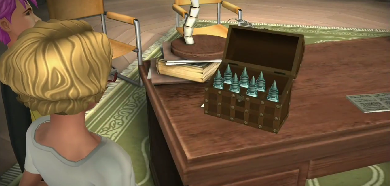 Because of this incident, Jacob's sibling asked their prefect to teach them how to duel, to which their prefect agreed. They told them there was a secret duelling book in the Artefact Room, so they went there to retrieve it with Rowan, but saw some visions in their head and heard a mysterious voice saying a kind of ice was here and a vault would open. Nevertheless, they acquired the book. They learned the Disarming Charm from Professor Flitwick and another spell with Rowan.[58]
