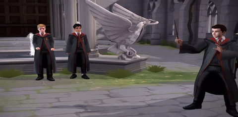 Jacob's sibling then attended their first Flying class. They talked briefly with Ben, who said he had been dreading the class all summer, and learnt to summon their broom. After the lesson, they played Gobstones with Rowan. Merula approached them and said mean things about their brother and the possibility of them working for the Dark Lord. They responded in the way they preferred, and soon Merula challenged them to a duel. They hadn't learnt any useful spells for duelling yet, but Merula hit them with a Knockback Jinx nonetheless, making them fall to the ground.[57]