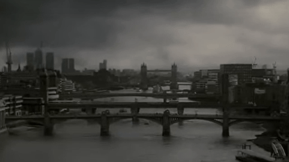 The Dark Mark and Death Eaters flying in the sky over London