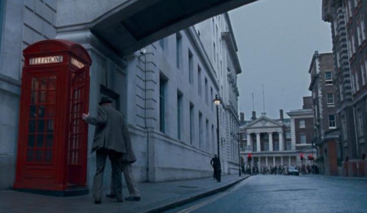 The visitors' entrance to the Headquarters of the Ministry of Magic on a London street