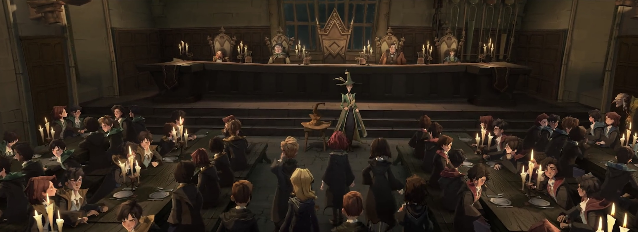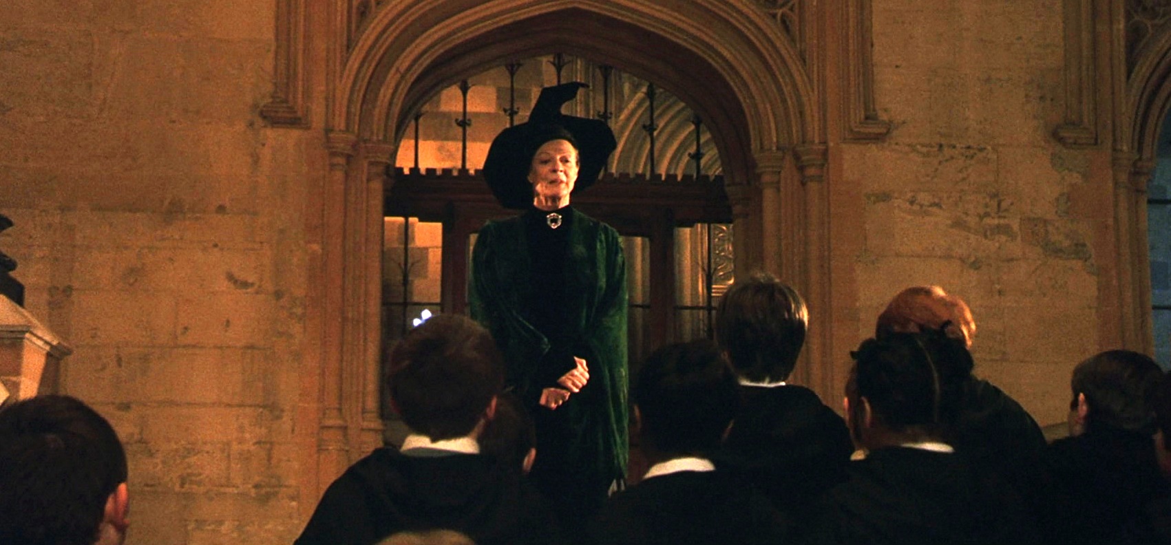 McGonagall welcoming first-year students to Hogwarts