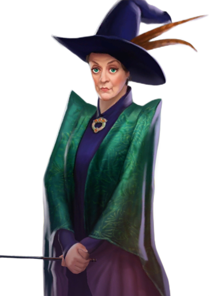 Professor Minerva McGonagall, O.M. (First Class),[17] (b. 4 October) was a Scottish half-blood witch, the only daughter of Muggle Robert McGonagall and witch Isobel McGonagall. She also was the older sister of Malcolm and Robert Jnr. Minerva attended Hogwarts School of Witchcraft and Wizardry and was Sorted into Gryffindor House, but it took the Sorting Hat five and a half minutes to decide if she was Gryffindor or Ravenclaw, which made her a Hatstall. During her seventh year, she was appointed Head Girl.