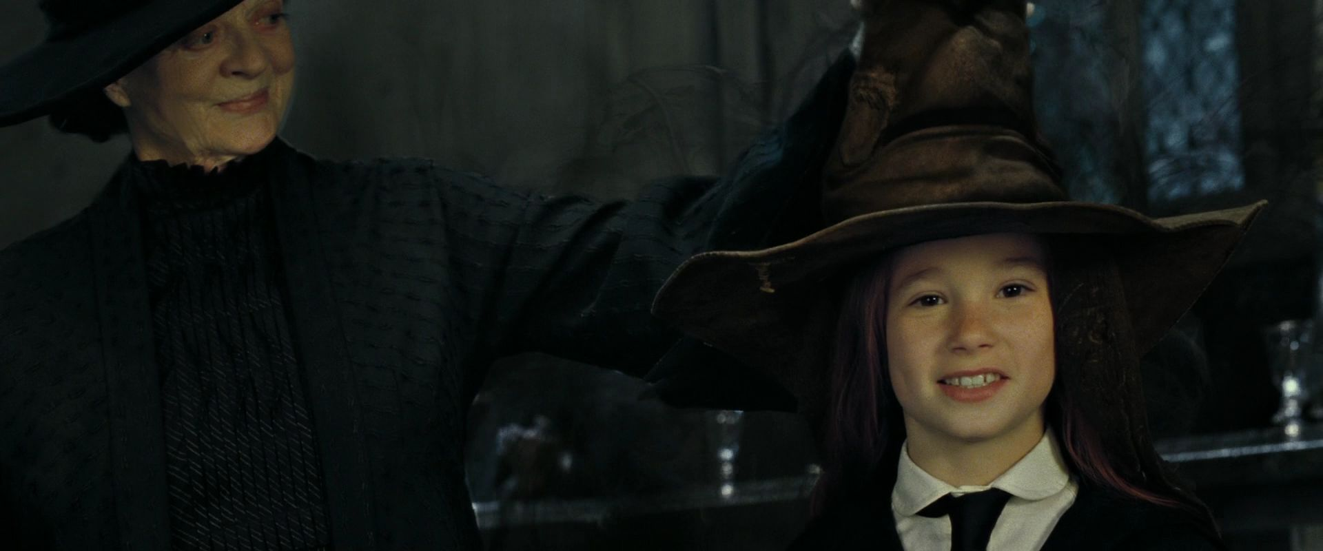 Minerva placing the Sorting Hat on Lily Evans