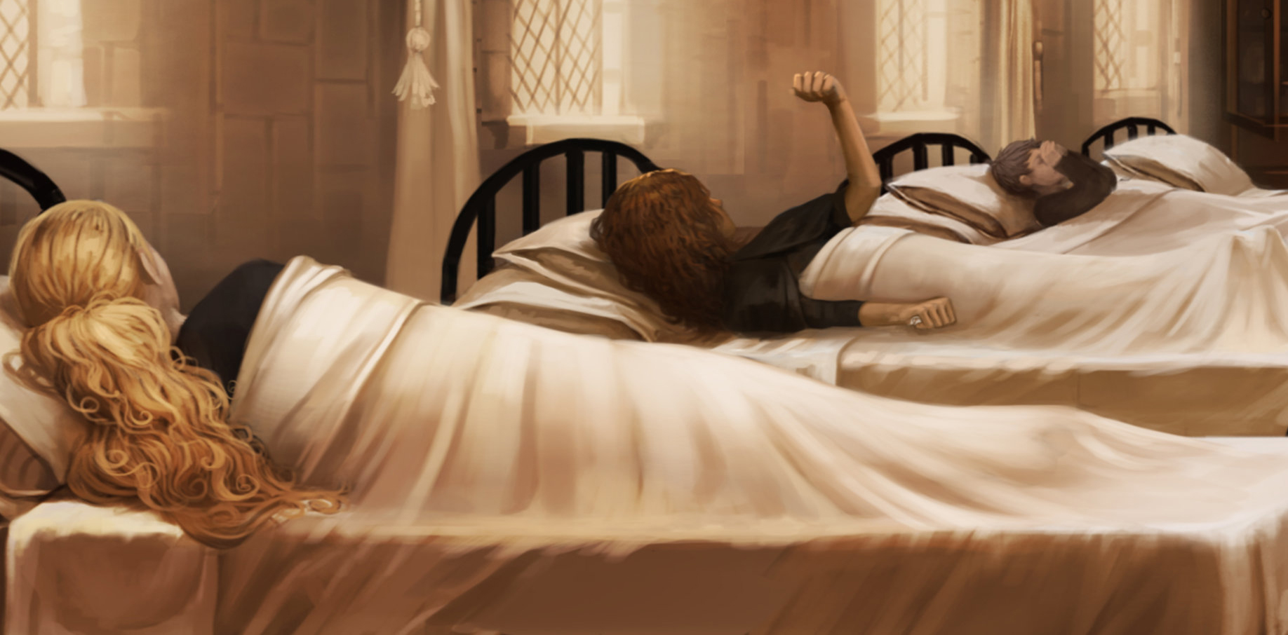 Petrified Muggle-borns in the Hogwarts Hospital Wing
