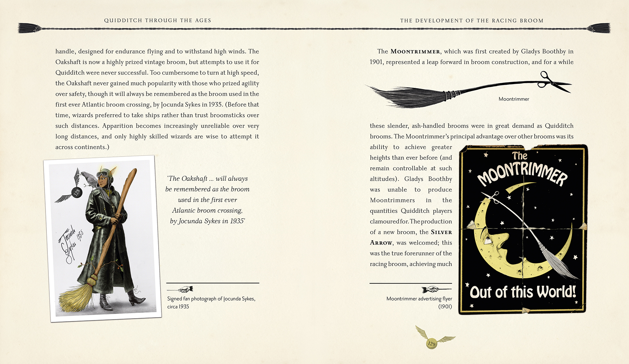 - A discrepancy in the in-universe book is that although Harry had the book in his first year (1991-1992), there is an event listed that occurred in 1994. It is, however, possible, that the "real" edition was updated. (Although this is unlikely, as the Nimbus 2000 and 2001 brooms were launched in 1991 and 1992 respectively, and the most recent Nimbus broom mentioned in the book is the 1700.)