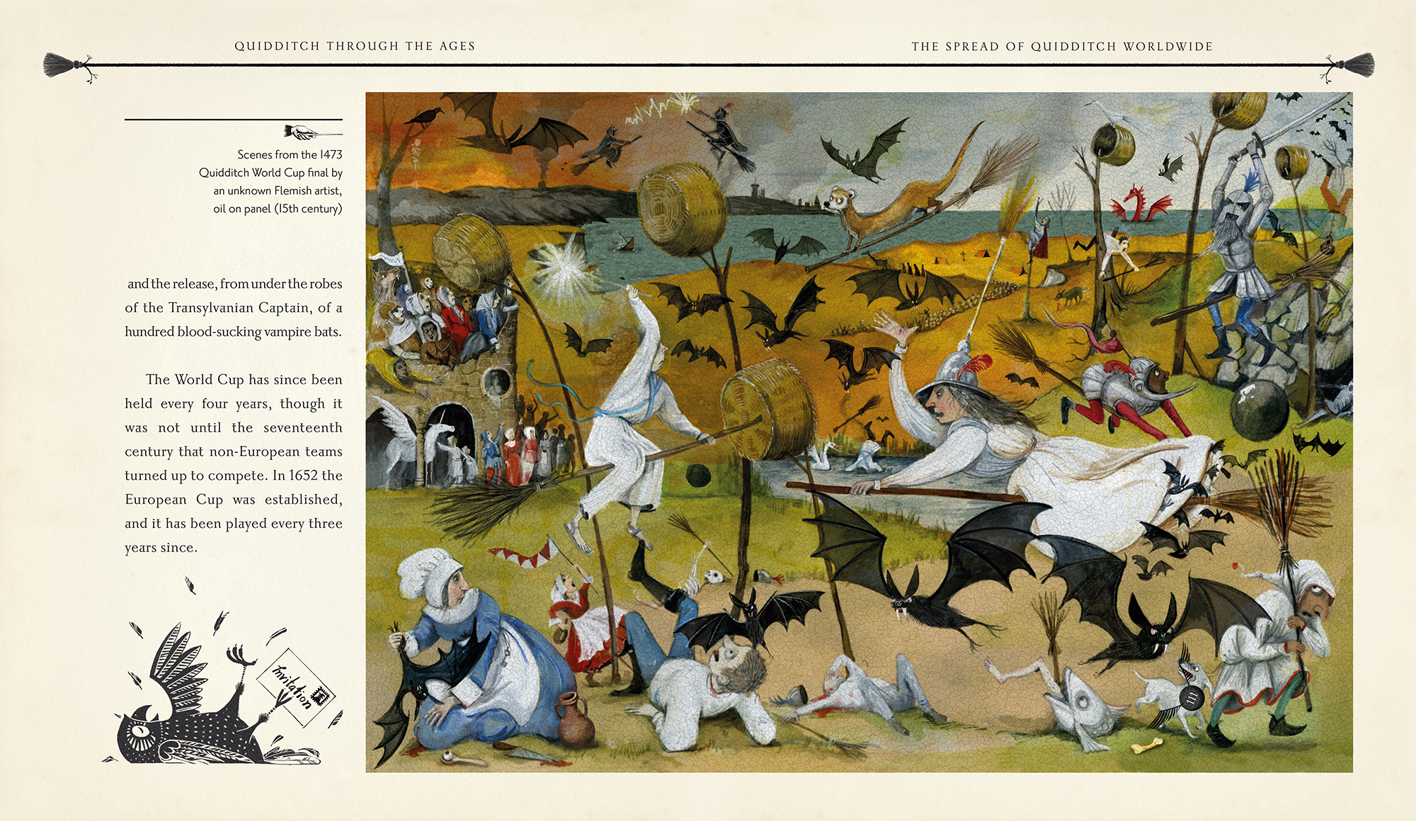- There are seven illustrations throughout the text (labelled Fig. A to Fig. G) by Rowling, in addition to an illustration of a flying Quidditch ball at the end of the text (from the ‘Whizz Hard Books’ logo) by Polly Napper.[citation needed]