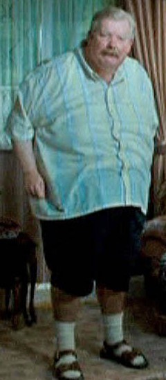 Vernon was described as a big, beefy man with a large purple face. He had thick, dark hair, a bushy black moustache (half of which he tore out through frustration on two occasions), with hardly any neck and mean little eyes that narrowed to slits when he was angry.[27] Dudley much resembled him apart from his blond hair.