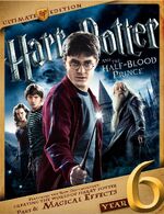 In many advertisements, posters, and DVD/Blu-ray covers for Half-Blood Prince, the Harry Potter logo is shown tilted at an angle and cut off at either end. Some posters also depict the logo with a bluish sheen. This film is also the first to abbreviate the film title to HP6, which was again done for the seventh film.