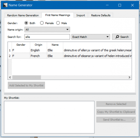 There is also a tab for finding first name meanings. You can look up the meaning of your name! I mean, your character’s name…